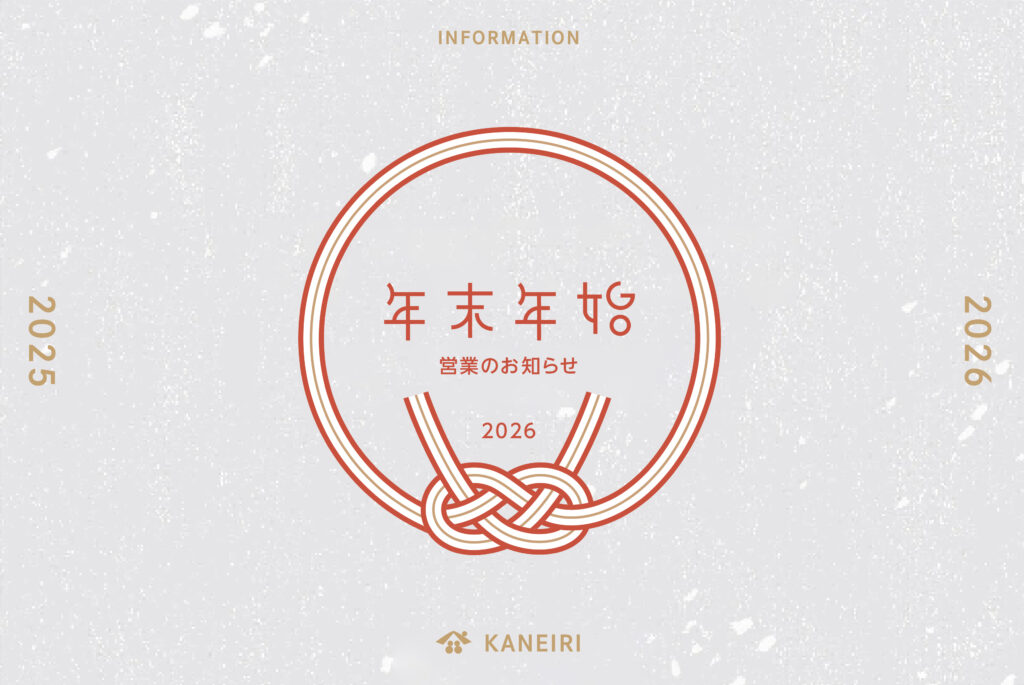 年末年始営業のお知らせ 新着 SHOPS 2025年も残りわずかとなりました。カネイリの年末年始の営業についてご案内いたします。今年も一年ご愛顧賜り誠にありがとうございました。2026年、午年も変わらぬご愛顧のほどよろしくお願いいたします。